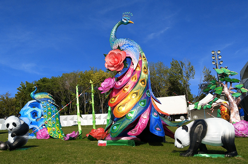 孔雀与熊猫彩灯